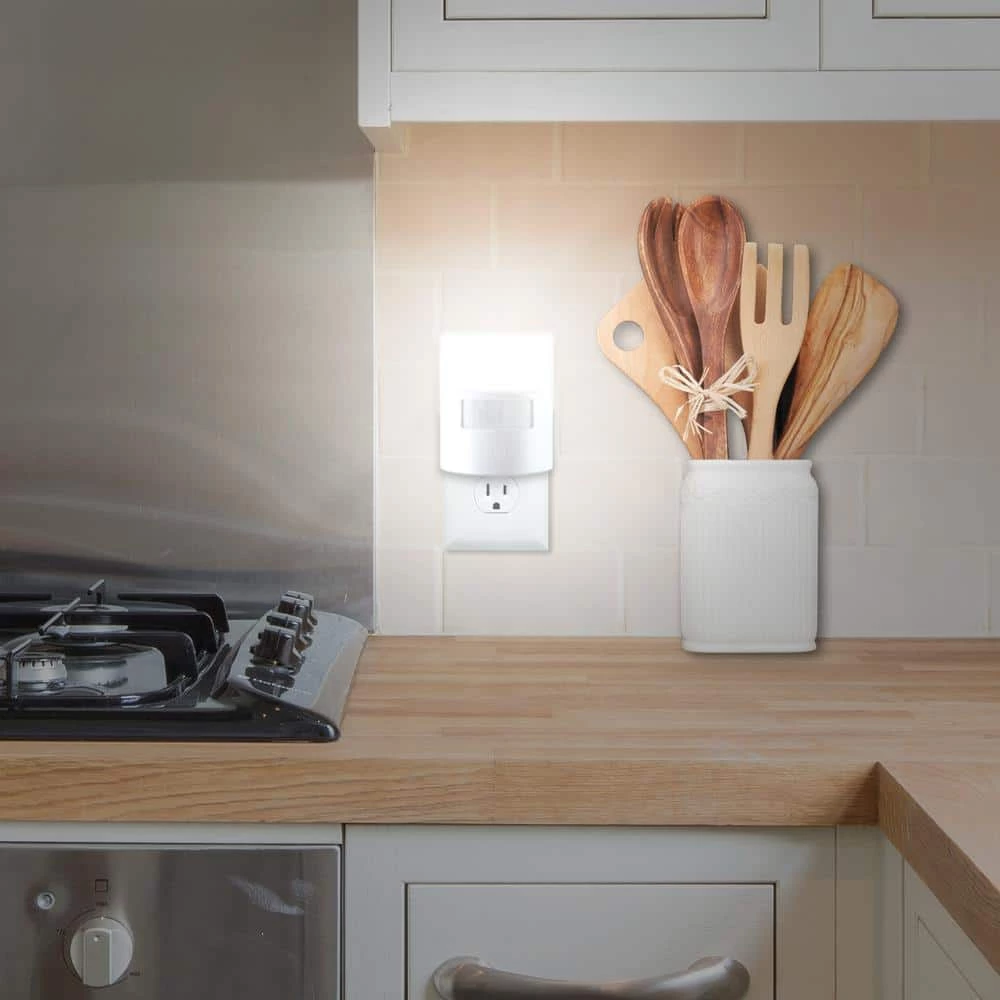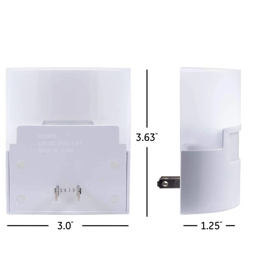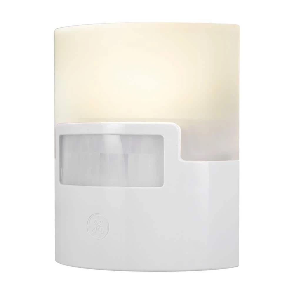 Save money and energy with the GE LED Motion-Activated Light. These Motion Activated Night Lights emit a very bright light level of 40 Lumens, making it perfect for use in hallways, kitchens, garages, utility rooms and closets. A classic white finish makes this light perfect for any home’s decor. The motion-activated light turns on when motion is sensed up to 25 ft. away and will automatically turn off 90 seconds after motion stops within the detection range. The LED light saves you money and energy by only operating in low-light conditions and turning off when not needed and the long life LEDs means that there are no bulbs to replace. The sleek design does not block the second outlet and the cool-to-the-touch cover makes this light perfect for use in any room of your home. It is for indoor use only. This product is UL listed and comes with a limited-lifetime warranty.
