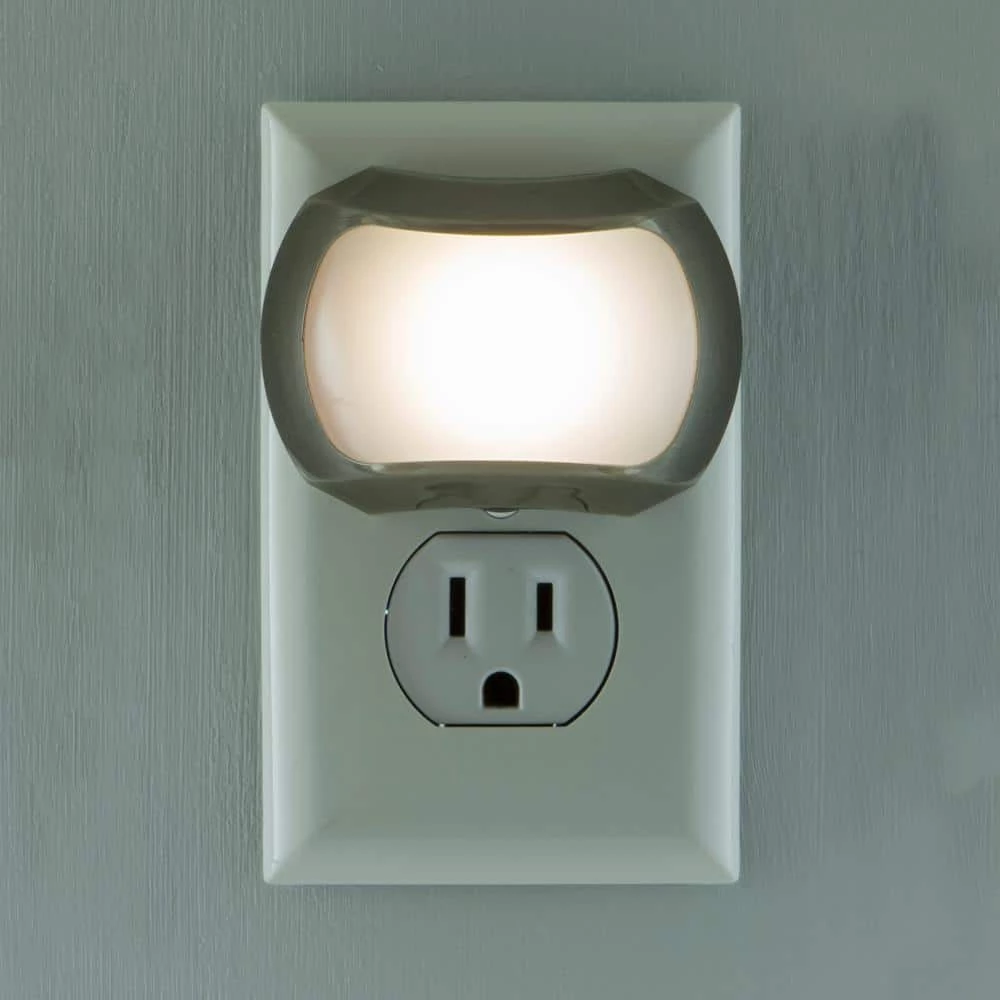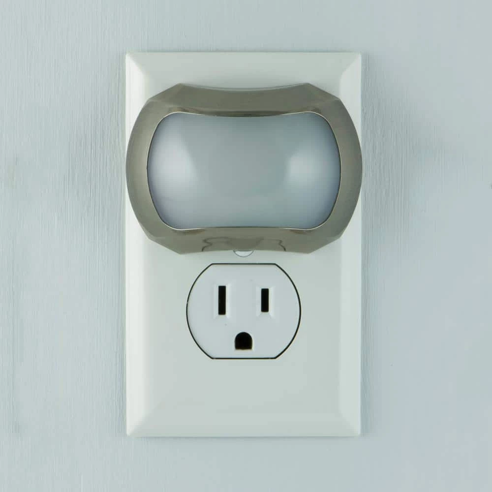 - Decorative Night Light – This night light has a stylish brushed nickel finish to complement your interior decor while