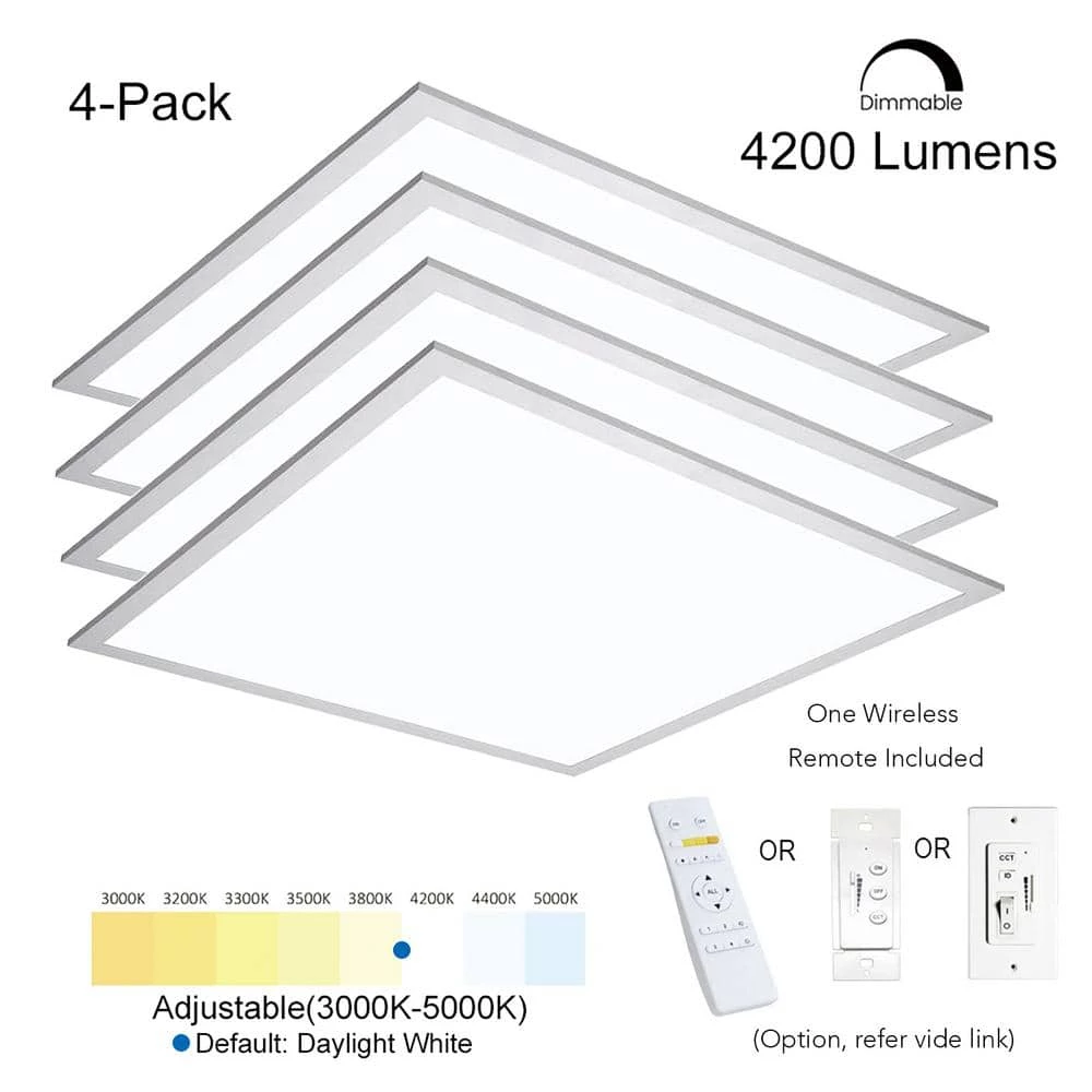eSenLite innovated dimmable (0 Lumens to 4200 Lumens) and color selectable (3000K to 5000K, factory default: 4000K), 2 ft. x 2 ft. flat ultra-thin standard 60-Watt LED ceiling troffer panel light provides exceptional performance and market leading quality while saving energy. Designed with maintenance free Integrated 3rd generation LED illuminators ensure up to 80,000-hours life cycles. Unique light fixture structure, side view emitting, high transmittance LGP, illumination uniformity and soft light can relieve eye fatigue, shadow free. Easily for most commercial installation as new lighting project or can replace your existing old-dated 2 x 2 fluorescent troffer. Lighting brightness and LED color can be easily adjusted by optional hand hold wireless 2.4 GHz remote and/or wall mount controller as well compatible with 0-Volt to 10-Volt standard dimmer. Applications include offices, conference/meeting rooms, classrooms, show rooms, working shop/studio and so on, unlimited.