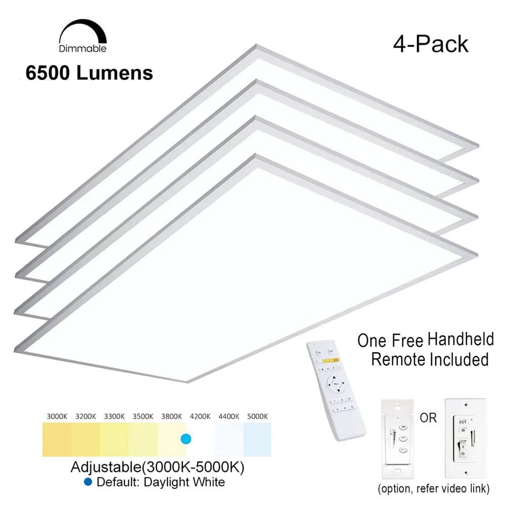 eSenLite innovated dimmable (0 Lumen to 6500 Lumens) and color selectable (3000 to 5000K, factory default: 4000K), 2 ft. x 4 ft. flat backlit standard 50-Watt LED ceiling troffer panel light provides exceptional performance and market leading quality while saving energy. Designed with maintenance free Integrated 3rd generation LED illuminators ensure up to 80,000-hours life cycles. Unique light fixture structure, side view emitting, high transmittance LGP, illumination uniformity and soft light can relieve eye fatigue, shadow free. Easily for most commercial installation as new lighting project or can replace your existing old-dated 2 in. x 4 in. fluorescent troffer. Lighting brightness and LED color can be easily adjusted by optional hand hold wireless 2.4GHz remote and/or wall mount controller as well compatible with 0-Volt to 10-Volt standard dimmer. Applications include offices, conference/meeting rooms, classrooms, show rooms, working shop/studio and so on, unlimited.
