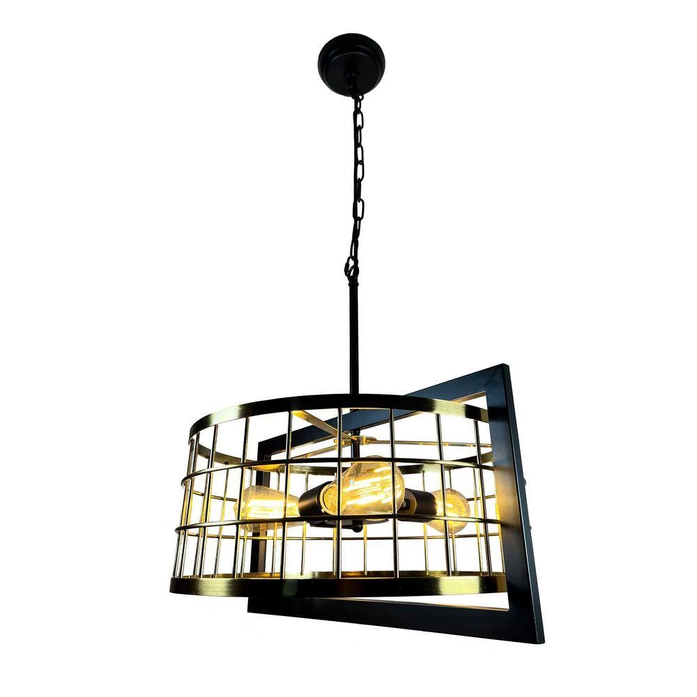 Here is the Akbal Chandelier Pendant with 3-Lights. A beautiful drum shape pendant in matt black finished with the drum metal shape in satin brass (gold) finished. It comes with black ceiling canopy and an adjustable black chain to hang. It requires 3 bulbs medium base, we suggest to use LED Filament bulb.