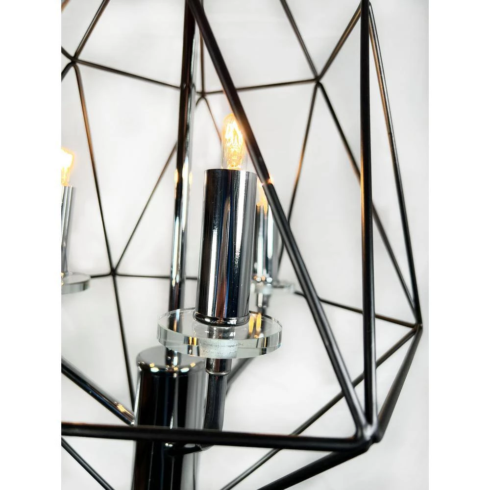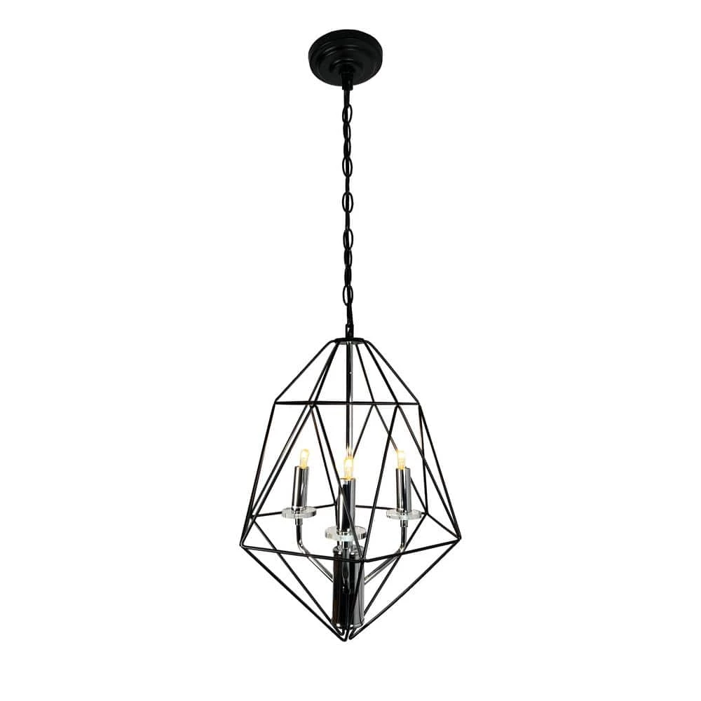 Here is the Amaite chandelier serie. A beautiful 3 tiers chandelier with 3 lights. It comes in chrome finished and matt black metal rhombus or diamond shape cage. It comes with black ceiling canopy and an adjustable black chain to hang. It requires 3 candelabra bulbs E12 base, we suggest to use LED Filament bulb. Perfect for traditional, transitional and modern environments.