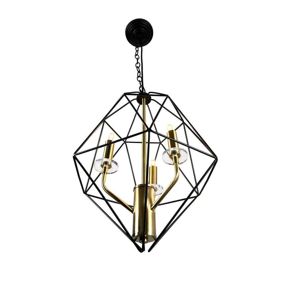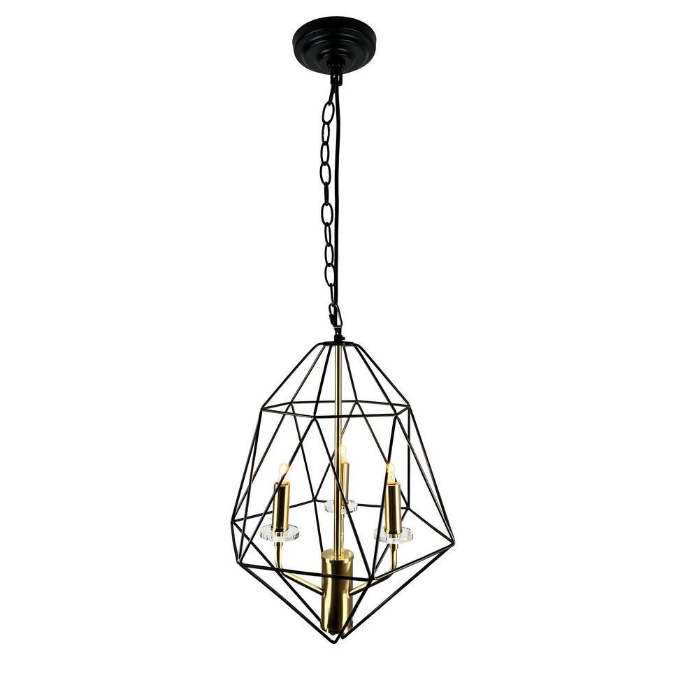Here is the Amaite chandelier series. A beautiful 3 tiers chandelier with 3 lights. It comes in satin brass (gold) finished and whit matt black metal rhombus or diamond shape shade. It comes with black ceiling canopy and an adjustable black chain to hang. It requires 3 candelabra bulbs E12 base, we suggest to use LED Filament bulb.