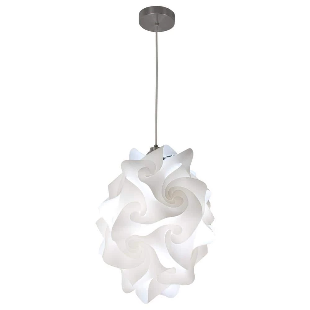 Pendant fixture made of white polypropylene plastic with satin nickel elements and clear cable. Design by Eduardo Alcalde, based on the original 1964 modular construction system by Antonio Carrillo. Inspired by the European modern pendants designs.