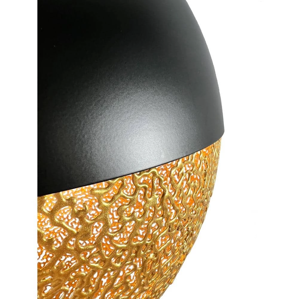 Here is the Iktan Pendant Serie. A beautiful globe shape pendant in matt black finished body with golden texture on the bottom. Made out of iron metal with beautiful finished. It comes with black ceiling canopy and adjustable 8 ft. black cord to hang. A great pendant for industrial, transitional or mid century environments.