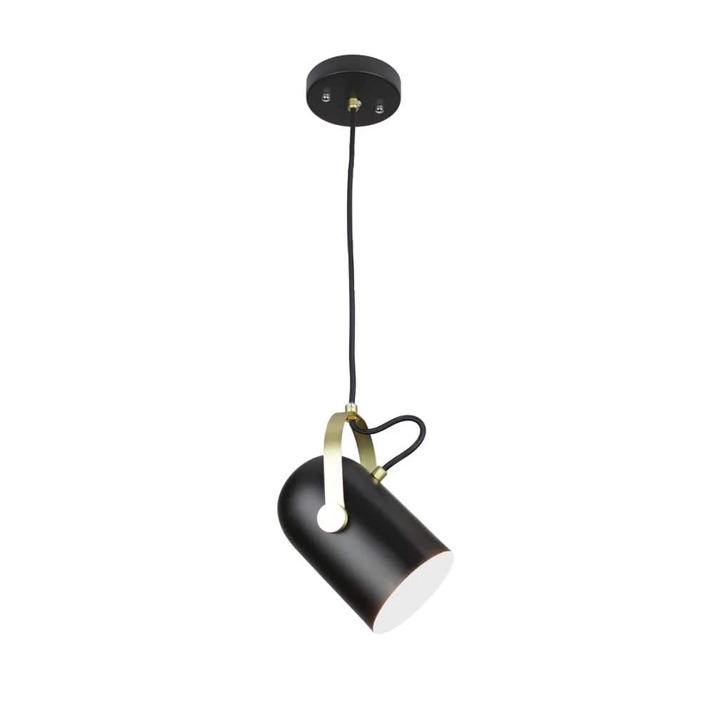Form the Industrial Collection here is the Theatrical pendant light. Made out of iron with matt black finished and gold elements. A pendant directional spot light type with black nylon cable of 8′ ft adjustable to hang and a mat black ceiling canopy. A great light for industrial and exposed concepts.