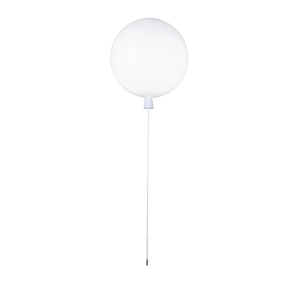 Here is the Itzel Balloon shape light. Is a ceiling mounted white fixture made out of white acrylic. Includes an RGBW LED bulb, with Wi-Fi color and dimming control. The balloon hanging white cord is an on/off pull down switch. Is great for kids or fun environment.