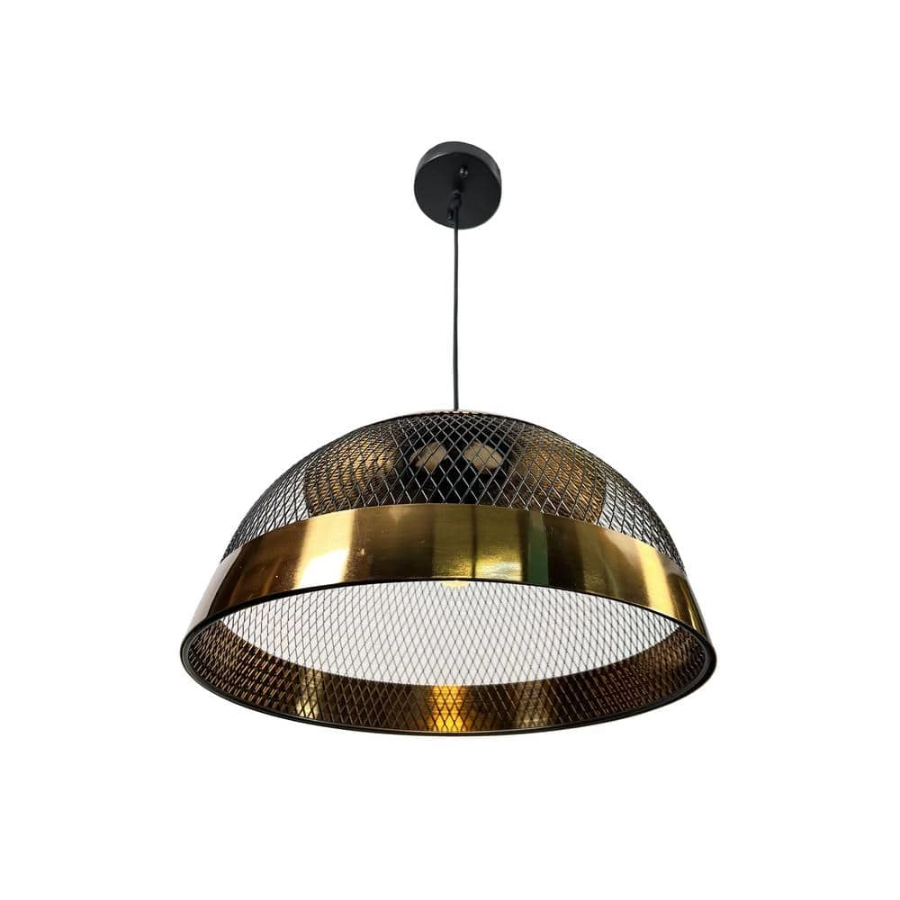 Here is the Izamal Dome Pendant Serie. A classic dome pendant in Sain Brass finished and a black decorative metallic net. It comes with black canopy and black 8 ft. adjustable cord to hang. A great dome pendant for industrial, mid century or transitional environments.