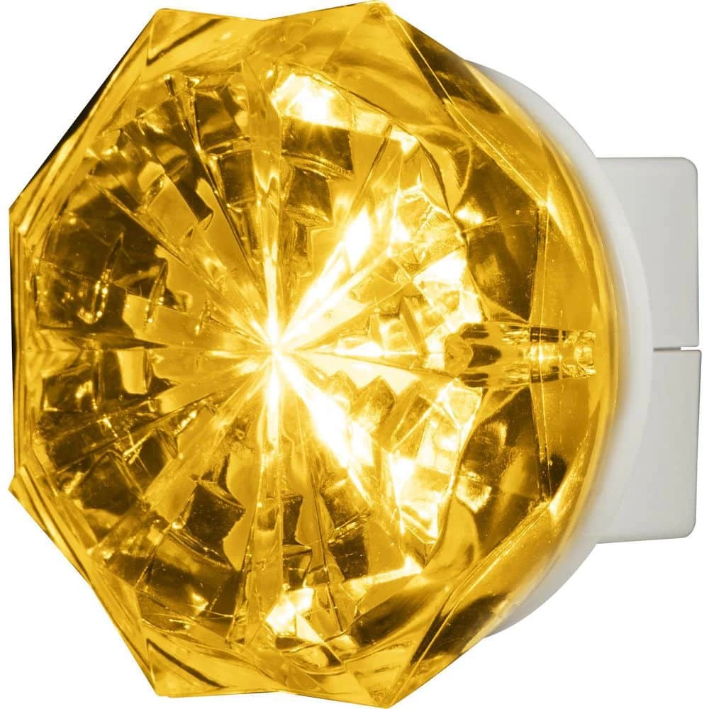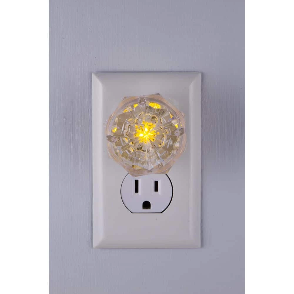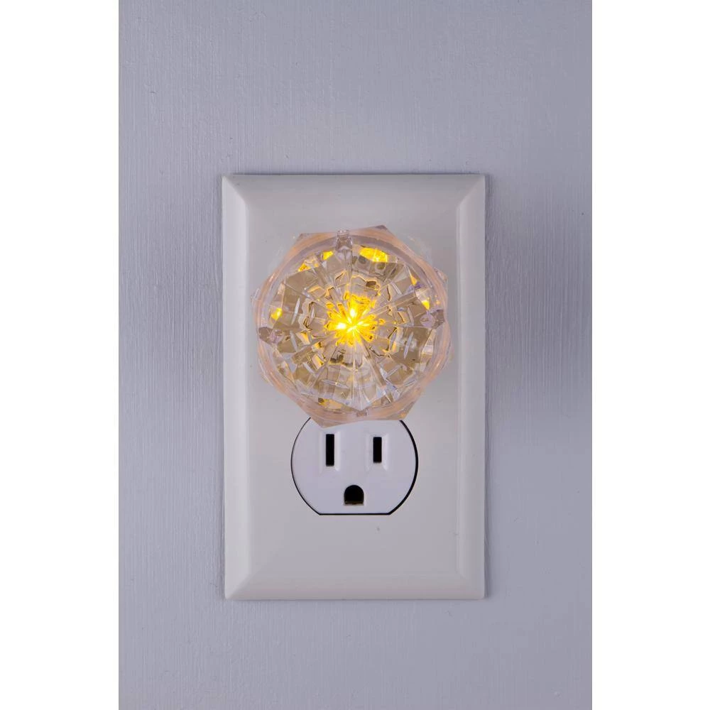Save energy and money with the GE Jewel LED Night Light. This energy-efficient night light features an elegant jewel design, as well as an always on, long-life LED which means no bulbs to replace. Even though it stays on, it is always cool to the touch. The night light provides a warm amber glow to light your way at any time. This product is for indoor use only. It comes with a 90-day limited warranty.