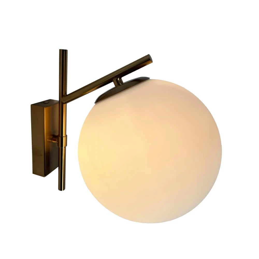From the Mid Century Collection here is our popular Wall Sconce with single ligth and white glass frosty globe in Satin Brass finished, it comes with a small canopy (wall plate) for cleanest look. The sconce can be installed upside down if preferred. This light is great for Mid Century, Industrial or Transitional environments.