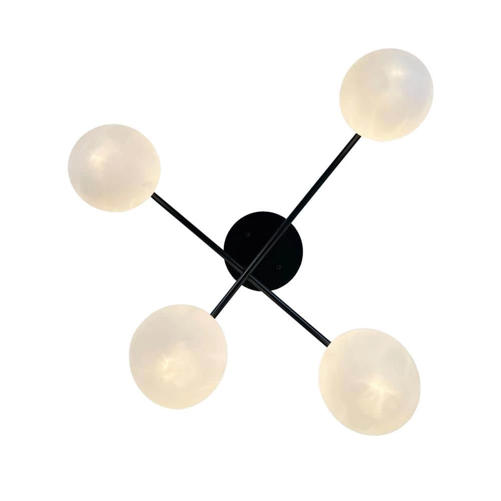 From the Mid Century Collection here is the Kinich Ceiling Semi Flush with 4-Light, and 4 white frosty glass globes and matt black finished. A beautiful semi flush with 4 tiers in cross. It requires 4 x G9 bulb Bi-pin. We suggest no more than 8W. A great semi flush recommended for living and dinning areas.
