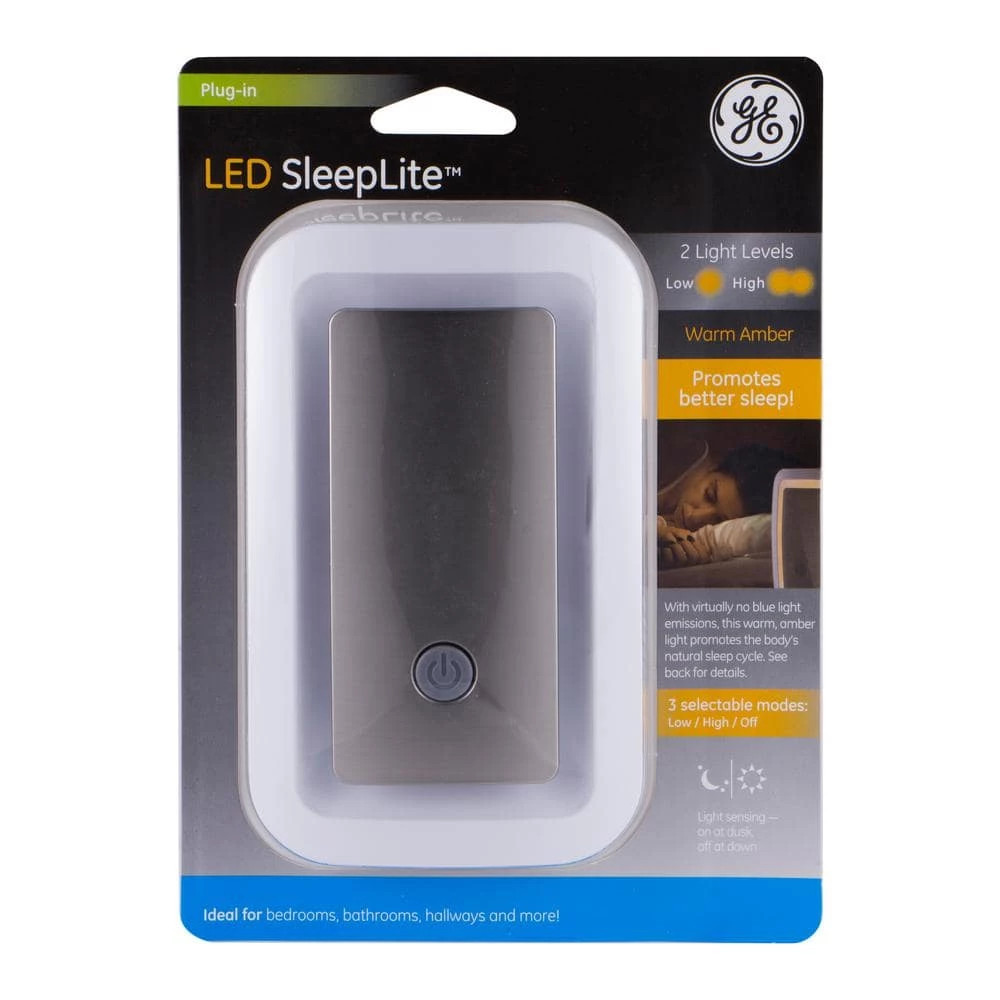Enjoy sound sleep and wake up well rested with the GE LED SleepLite Night Light. Using special LED technology, the soft, warm LEDs distribute a tranquil candlelight glow in your room at night, offering the illumination you need to move about, but without the blue wavelengths found in most white lights that disturb your body’s natural sleep cycle. In the digital age, time spent in front of our screens – including tablets, phones, computers and televisions – is an integral part of our work and recreational life. Since the blue light emissions found in our devices tends to suppress the body’s production of melatonin (or the “sleep hormone”), exposure to excessive LED blue light at night can disrupt our natural internal clocks. The warmer hue of the SleepLite yields virtually no blue light, supporting healthy melatonin levels that tell our bodies it’s time for rest. By promoting a natural sleep cycle, the SleepLite works to strengthen your overall sleep quality. It’s time to use sleep to your advantage with the GE SleepLite.