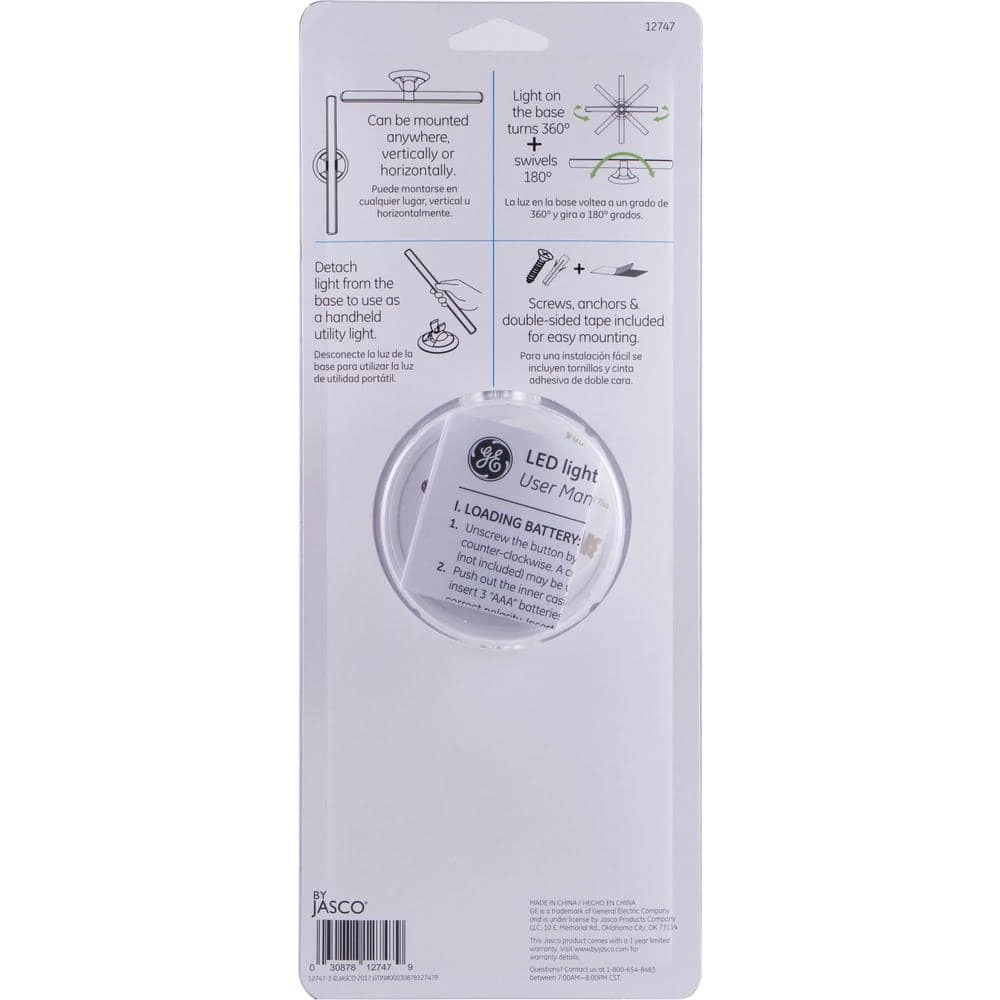Light up your space with the LED Light Wand from GE. Versatile for under cabinets, closets, work benches, hallways, washrooms, pantries and laundry rooms, this light shines at a bright 35 lumens and has high and low settings. No wiring needed, it is powered by 3 AAA batteries and can be placed in any indoor location. Add lighting to your home without the need for an electrician. This multi-position light rotates 360° horizontally or 180° vertically, can be mounted horizontally or vertically and is easily removable from the mounting bracket, allowing you to take the LED Light Wand with you on-the-go to be used as a hand-held utility light. Easily mount the light anywhere with included mounting hardware.