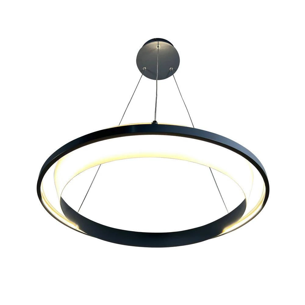 Here is the Litza Integrated LED circular pendant. This fixture comes in black finished and an adjustable 8 ft. wire to hang. It also comes with black ceiling canopy. This pendant is available in 2 different colors; black or gray (each sold separately). A LED pendant of 41-Watts and 3000K perfect warm ligth for residential use. A very contemporary piece with modern, transitional concept.