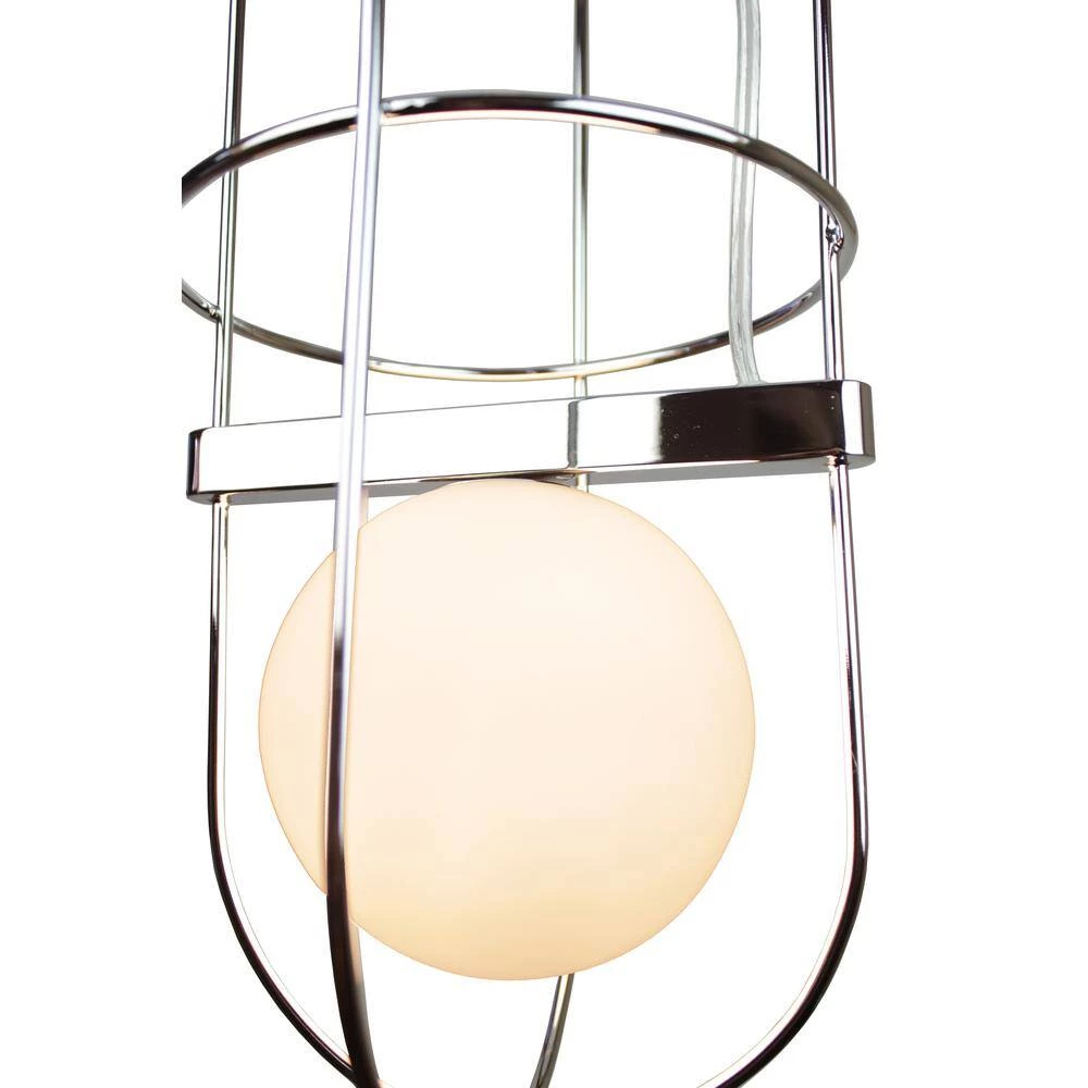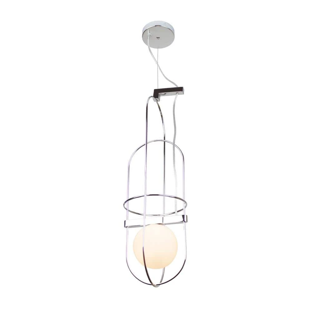 Here is the Nicancil 1-light pendant in chrome finished. It comes with an adjustable 8 ft. clear cord and wire to hang and a chrome canopy. Includes a 6 in. Dia White frosted glass shade globe. It requires a G9 Bi-Pin bulb. We recommend LED G9 Bi-pin bulb. A great pendant for mid-century and modern areas.