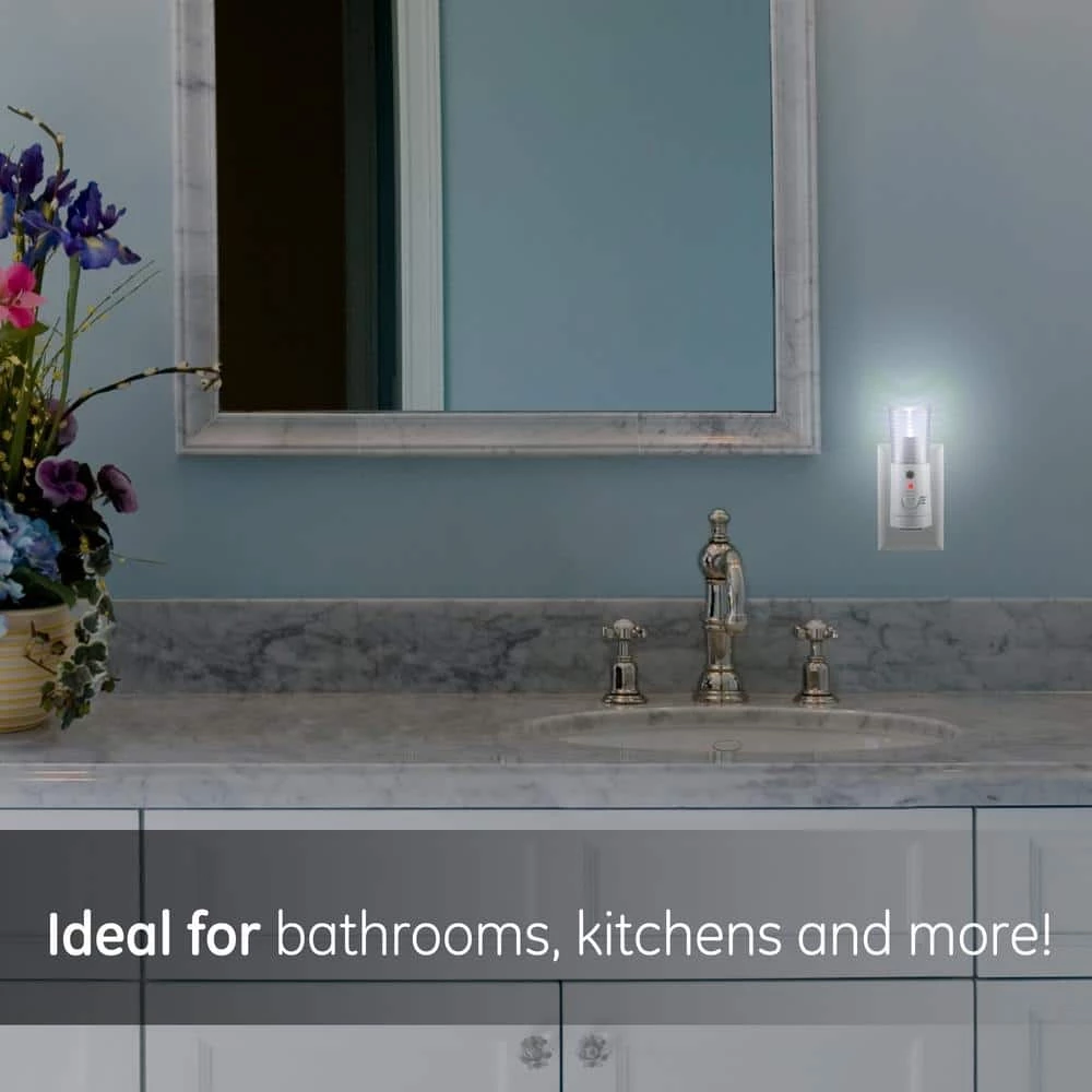 - Night light: when plugged in to an outlet, light-sensing technology allows this light to automatically turn on at dusk and off at dawn, and functions similar to a sconce night light