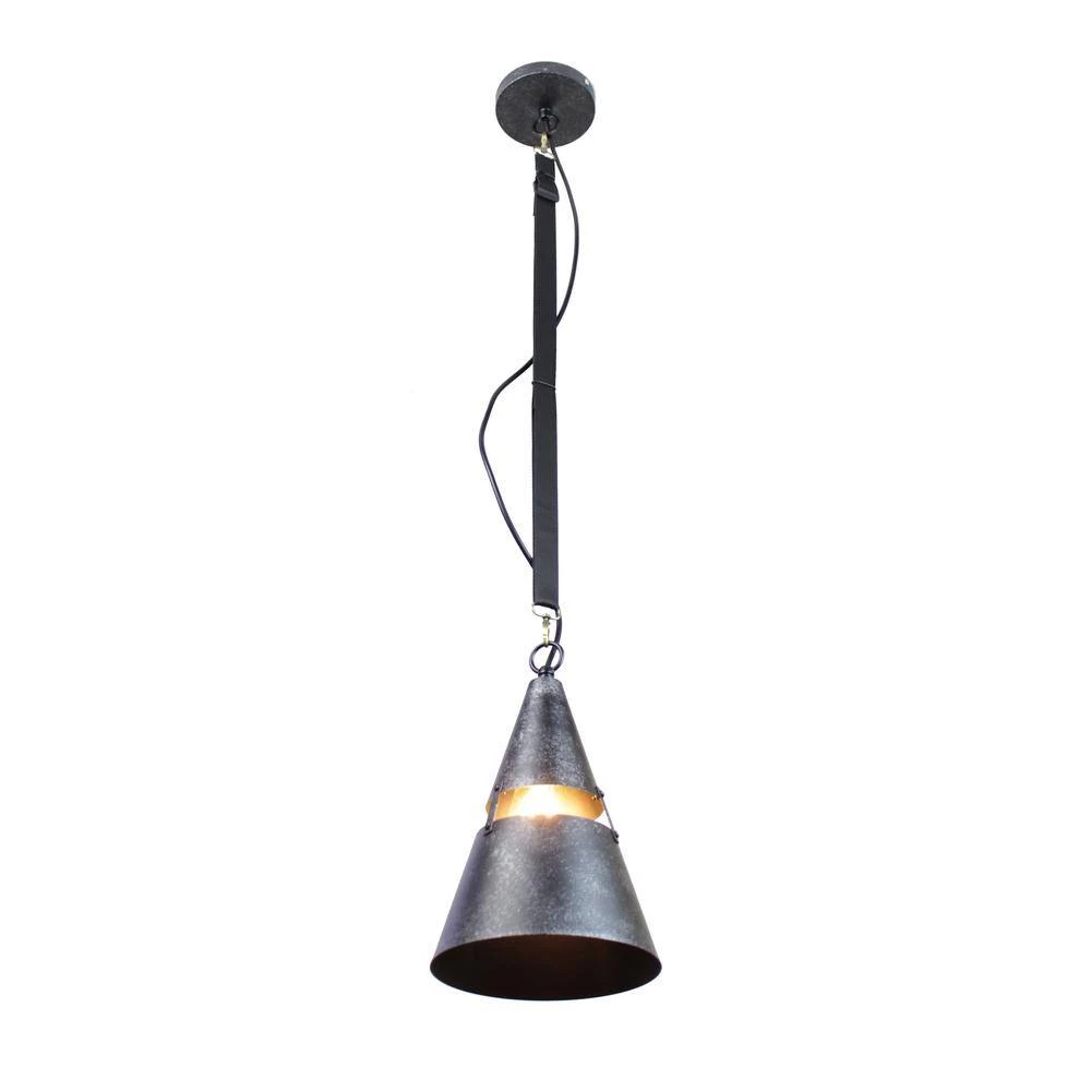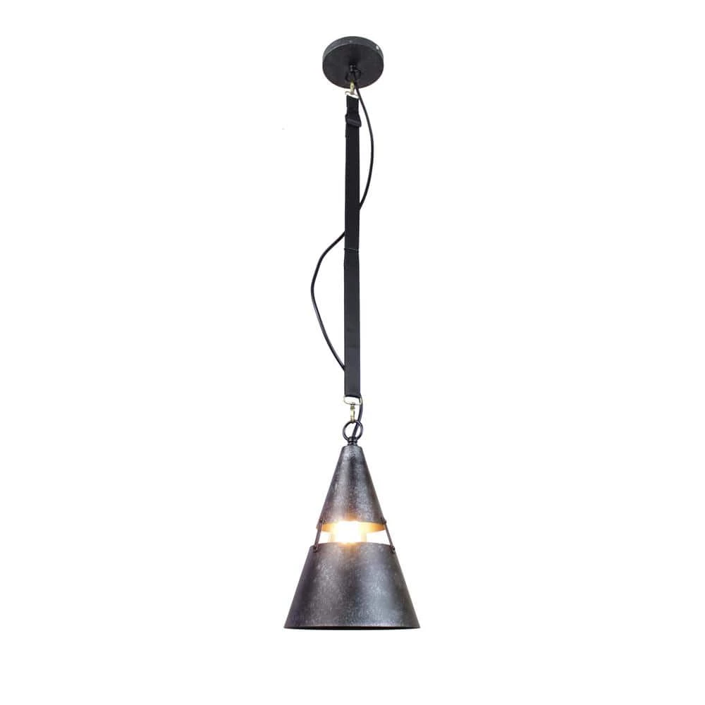 From the industrial collection. Here is the Yalit 1 light industrial pendant in distressed black finished. The finished give off an industrial used metal . It comes with an adjustable 8’ft black nylon band and black cord to hang. It also comes with a black canopy. This is a very industrial pendant. Excellent for industrial spaces.