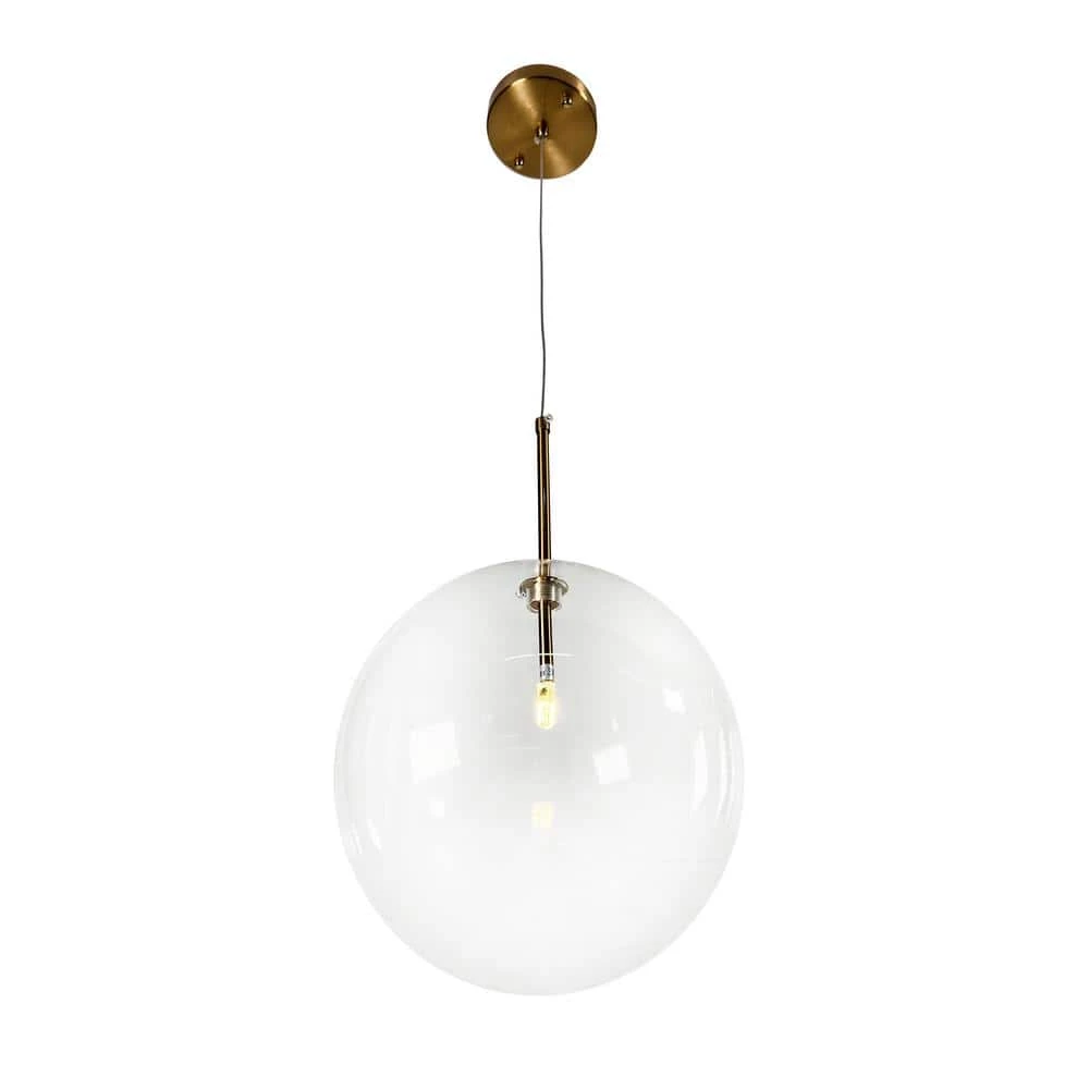 From the Mid Century Collection here is the Yumil Series. A beautiful pendant in satin brass finished. It comes with a clear glass globe shape, ceiling canopy in satin brass and an adjustable 8 ft. clear cord to hang. Includes a LED G4 Bulb. This pendant is available in 3 different sizes; small 8 in., medium 10 in. and large 12 in. (each sold separately). A beautiful clean pendant, great for Mid Century or transitional decoration.